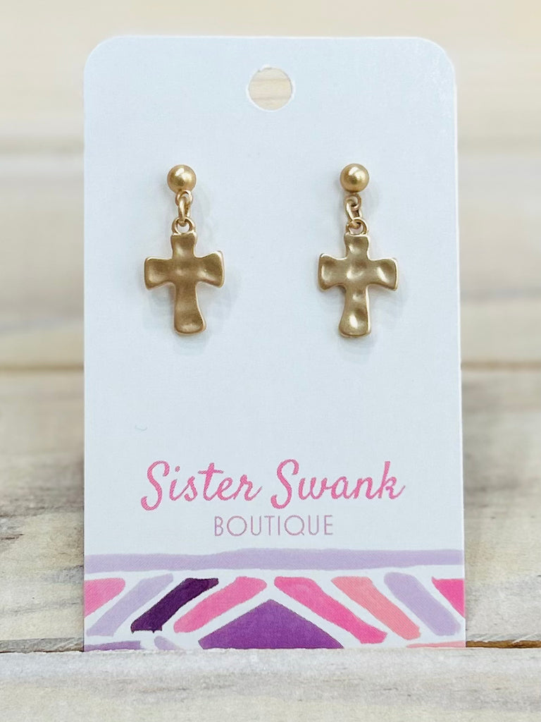 Hammered Metal Cross Post Drop Earrings
