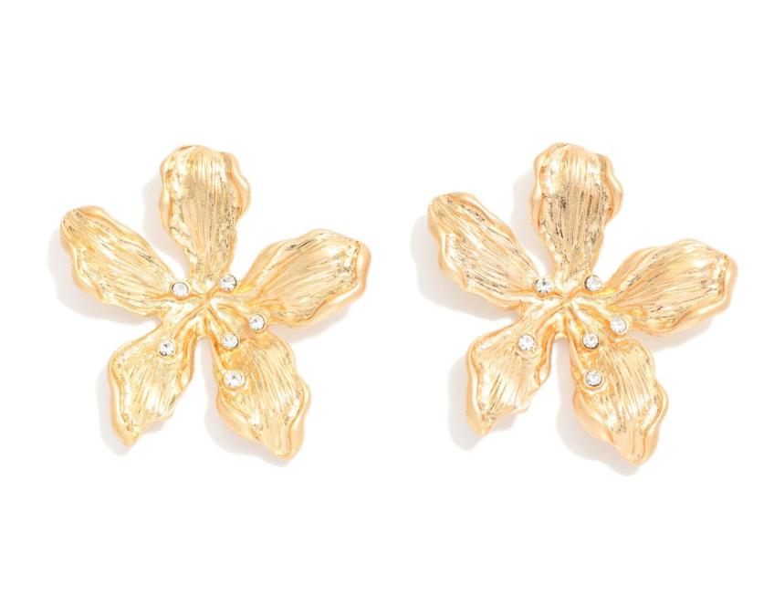 Textured Metal Flower Post Drop Earrings- Approximately 1.5" L