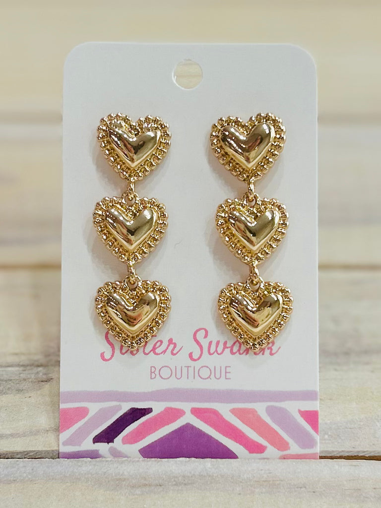 Linked Puffy Heart Post Drop Earrings