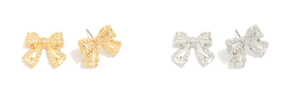 Chunky Metal Tone Bow Post Drop Earrings