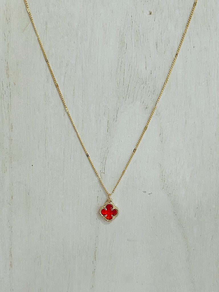 Flat Chain Link Necklace Featuring Glass Crystal Clover Pendant
