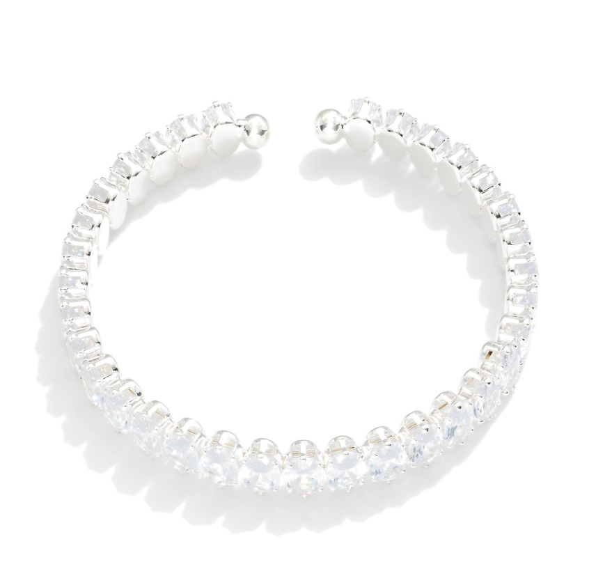 Cubic Zirconia Studded Cuff Bracelet- Approximately 2" D