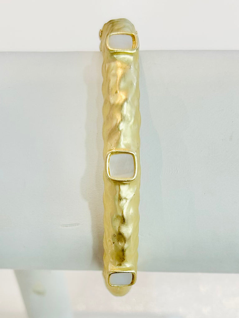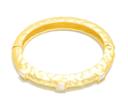 Hammered Metal Hinged Bangle Bracelet Featuring Stone Details