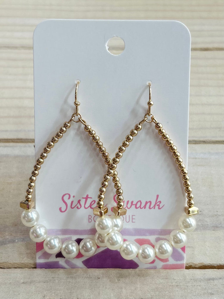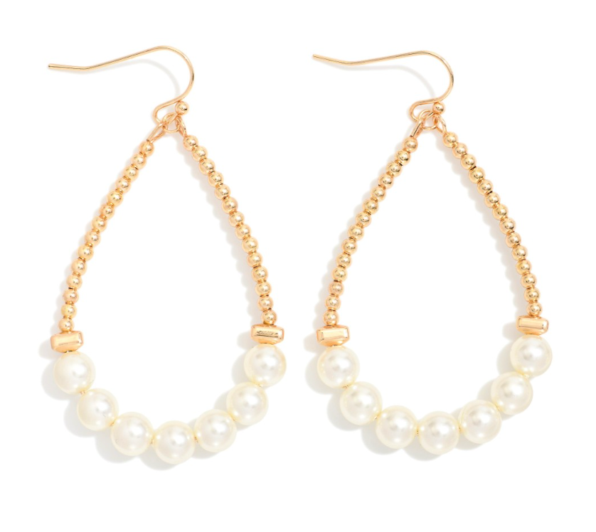 Metal Tone Bead Beaded Teardrop Earrings Featuring Pearl Detail