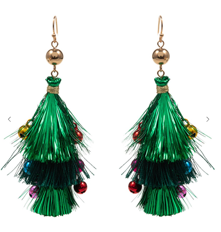 Green Christmas Triple Tassel Layered Dangle Earrings