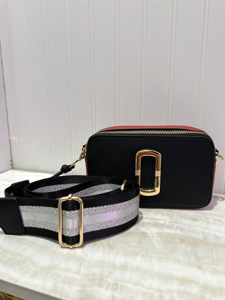 Add a touch of chic edge to your look with this black and maroon statement bag! ✨ Featuring gold accents and a sleek black-and-silver strap, this purse is the perfect mix of classy and bold. The structured shape makes it ideal for everyday wear or a night out, while the versatile color combo pairs effortlessly with your fall and winter wardrobe.