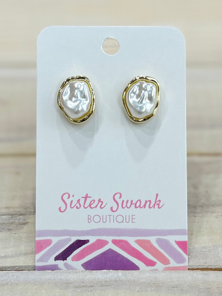 Baroque Pearl & Metal Tone Border Post Drop Earrings