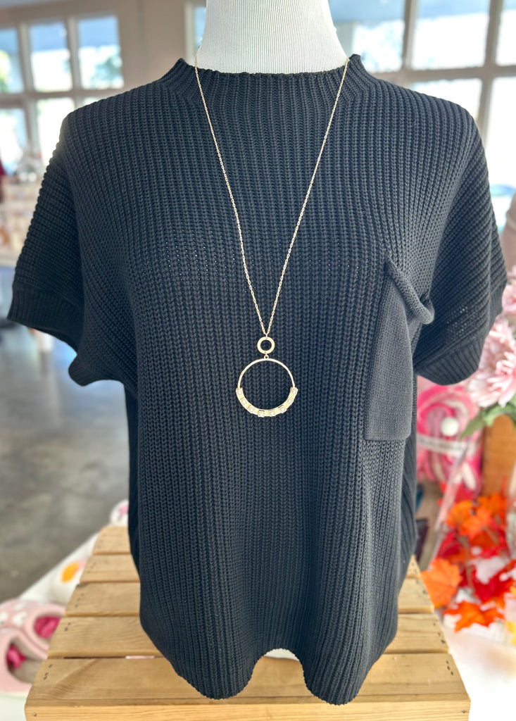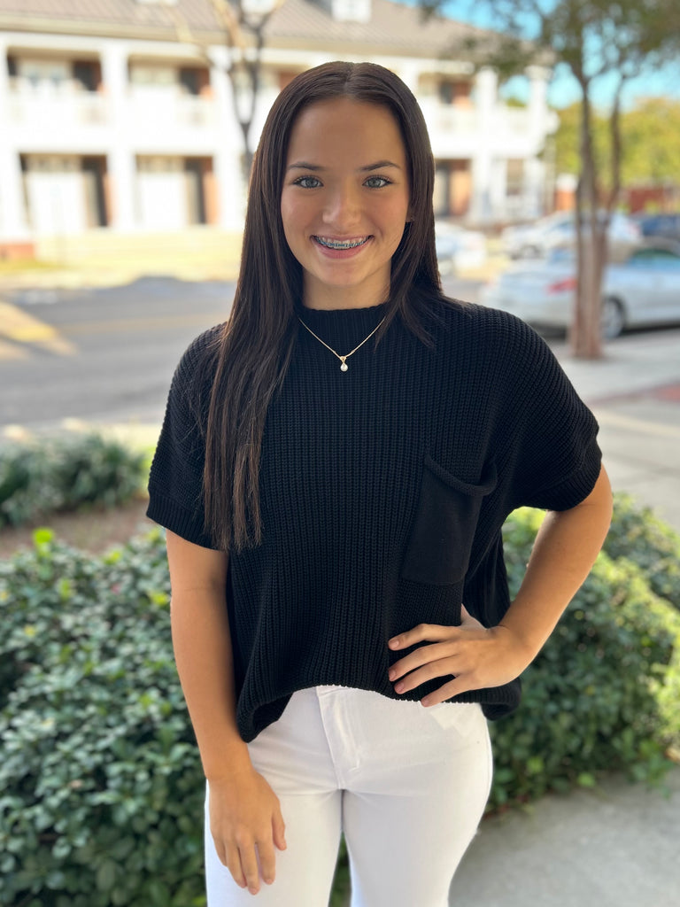 Cozy meets casual in this drop shoulder short sleeve sweater top featuring a relaxed fit and front side pocket detail. Soft and stylish, it’s perfect for layering or wearing on its own for an effortlessly laid-back look!! Made of 100% cotton.