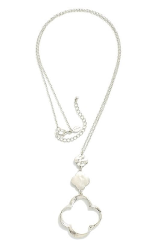 Long Chain Link Clover Pendant Necklace - Silver