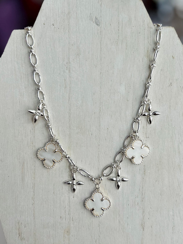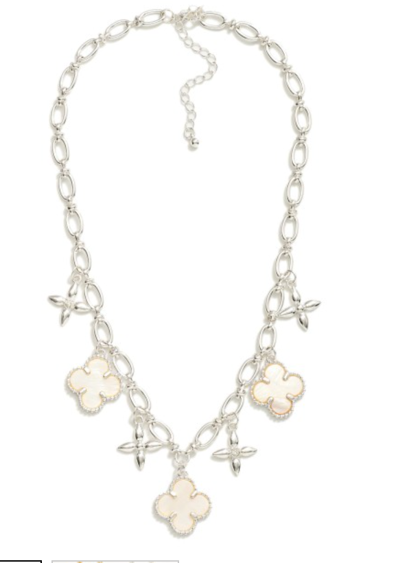 Chain Link Charm Necklace Featuring Pearlescent Clovers & Star Charms
