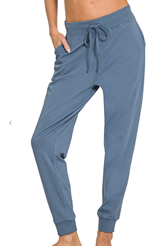A cozy essential! ✨ These dusty blue cotton joggers come with an elastic waistband, drawstring, and pockets for a relaxed, comfy fit that’s perfect for running errands or lounging!