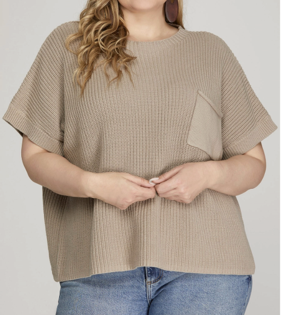 Cozy meets casual in this drop shoulder short sleeve sweater top featuring a relaxed fit and front side pocket detail. Soft and stylish, it’s perfect for layering or wearing on its own for an effortlessly laid-back look!! Made of 100% cotton.