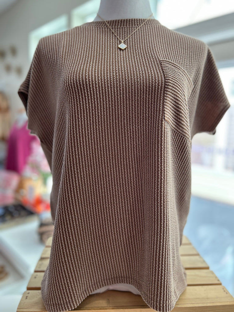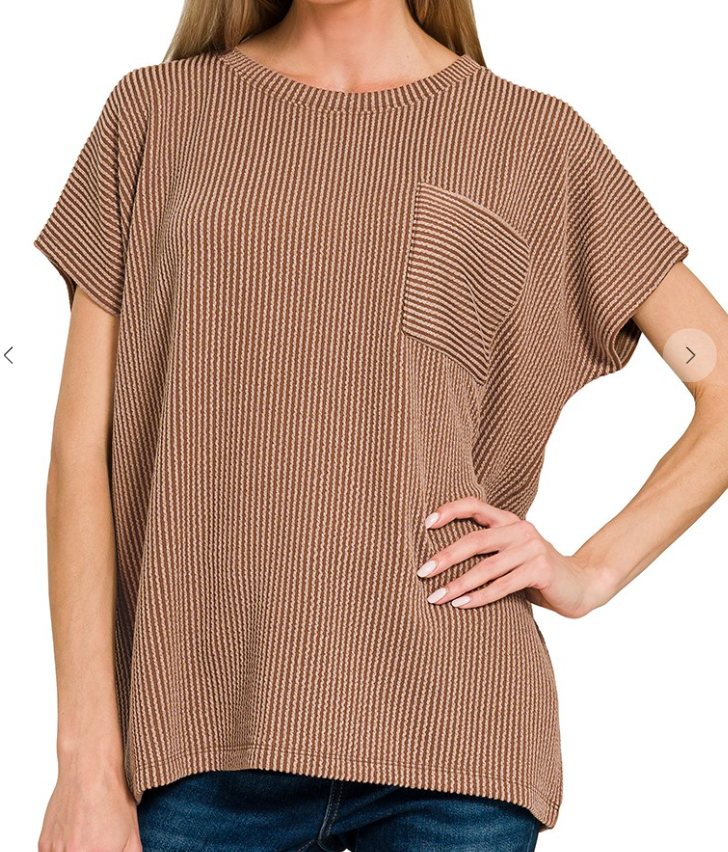 TheChill Day Top is made for effortless style and comfort! With its relaxed boxy fit, ribbed texture, and front pocket detail, it’s the perfect mix of laid-back and comfy! Made of a polyester/rayon/spandex blend.