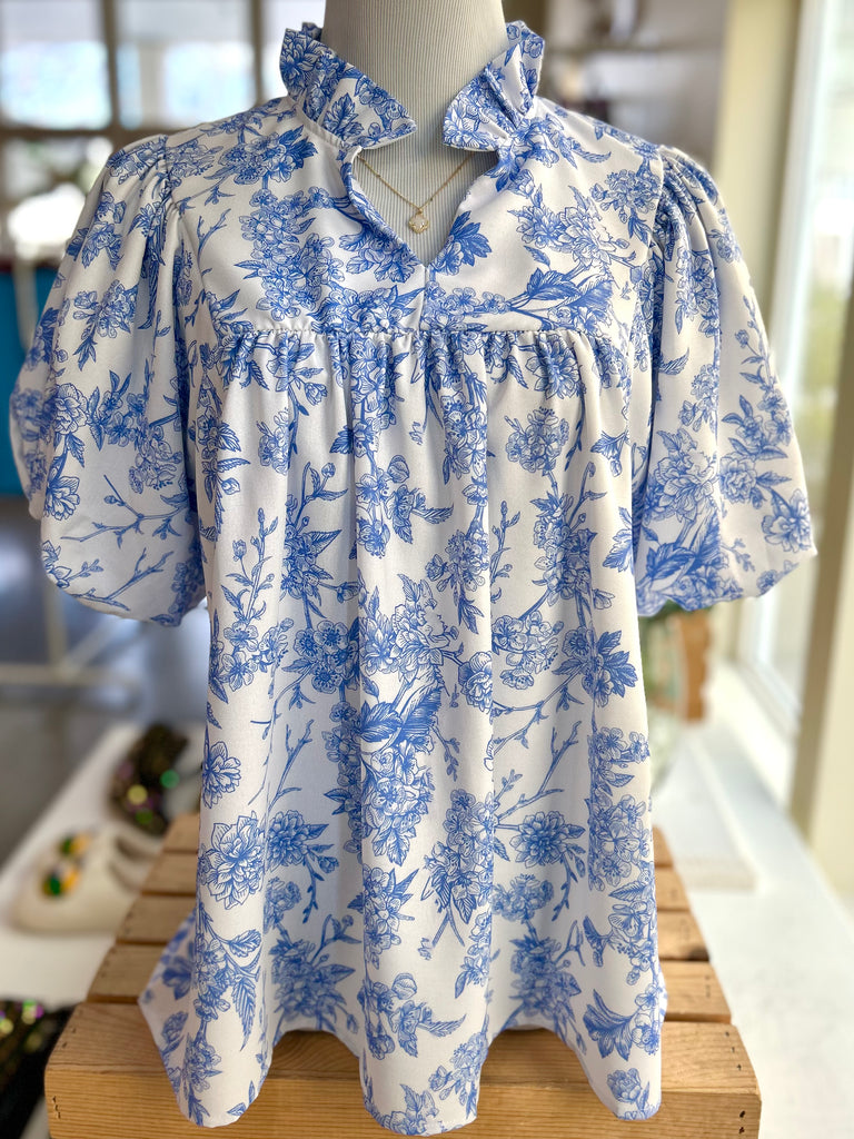 This sweet woven blouse features a feminine floral print with a frilled notch neckline. Bubble puff short sleeves add the perfect touch of volume, making it easy to dress up or down. Lightweight and breezy, it’s a go-to top for everyday wear or special plans.