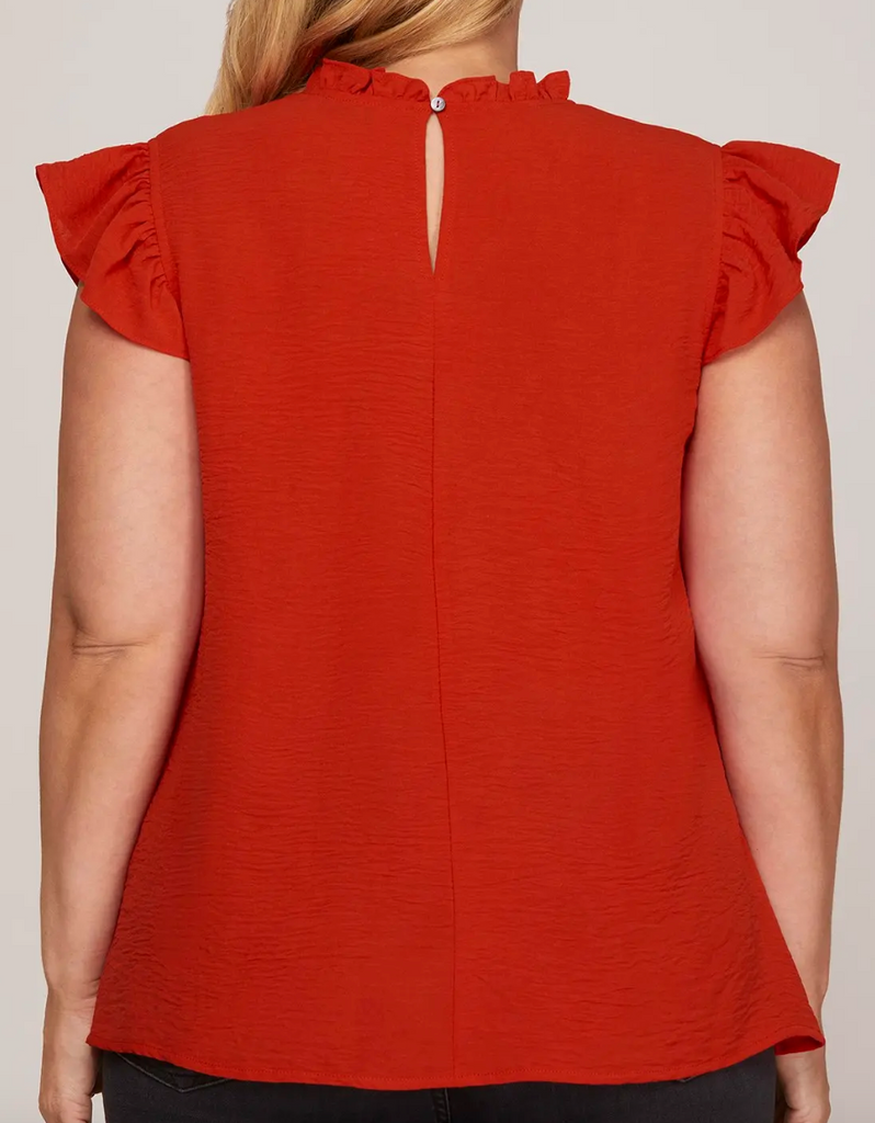 A classic silhouette with a modern twist, this flutter sleeve blouse features chic pintuck detailing and a soft ruffled neckline. The perfect blend of style and comfort, it’s your go-to for everyday elegance. Made of 100% polyester.