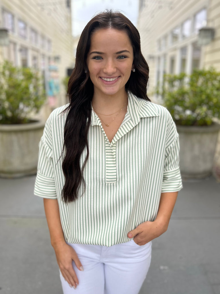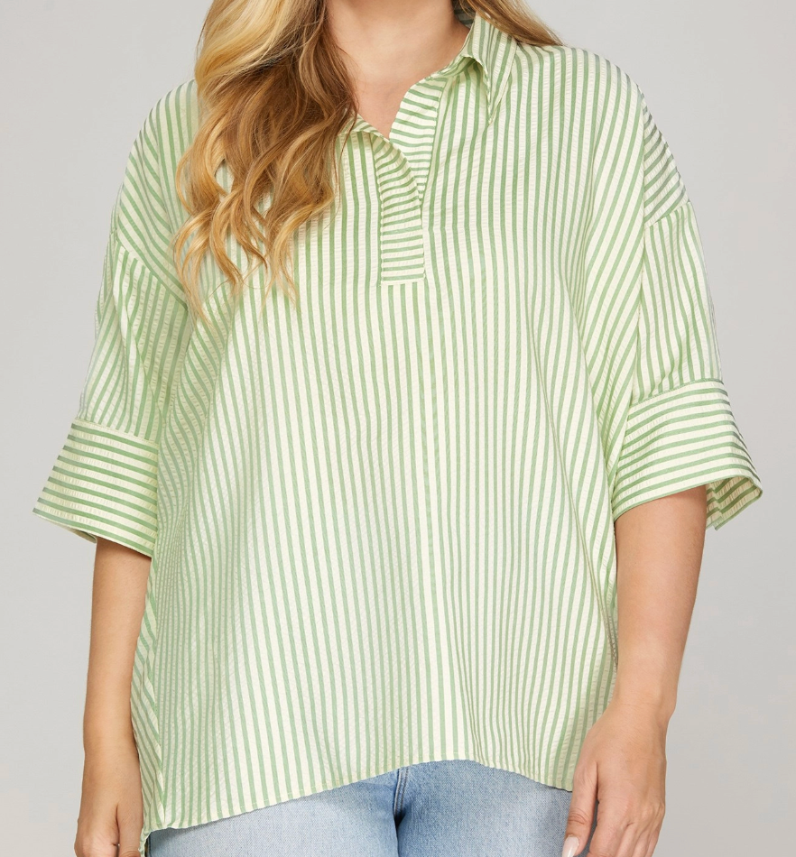 This comfy oversized top features classic stripes with a relaxed fit that’s perfect for everyday wear. Designed with short sleeves it’s effortless, flattering, and so easy to style. Pair it with denim, leggings, or shorts for a laid-back, casual look.