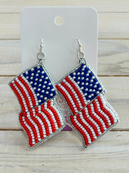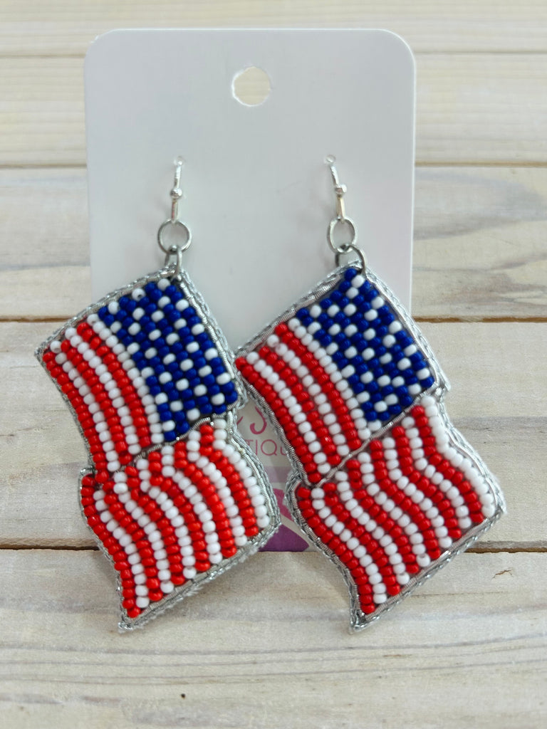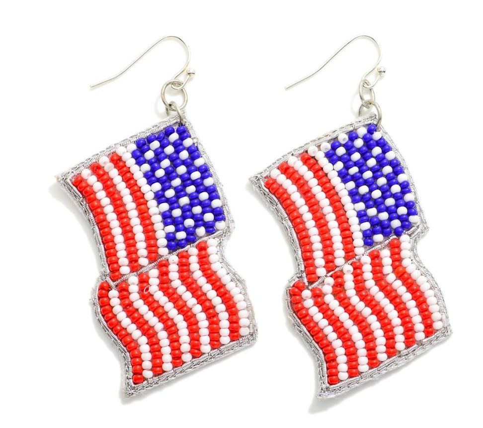 American Flag Beaded Drop Earrings