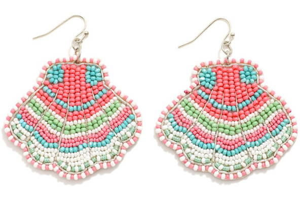 Seed Beaded Shell Drop Earrings- Approximately 3" L