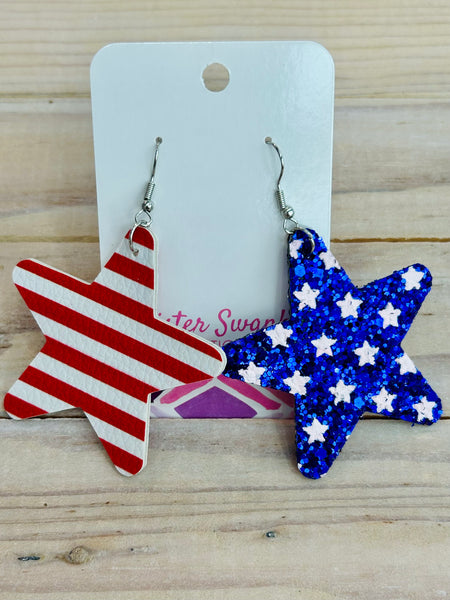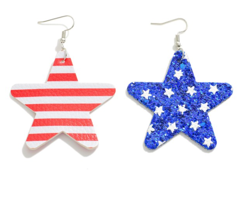 Leather American Flag Glitter Drop Earrings