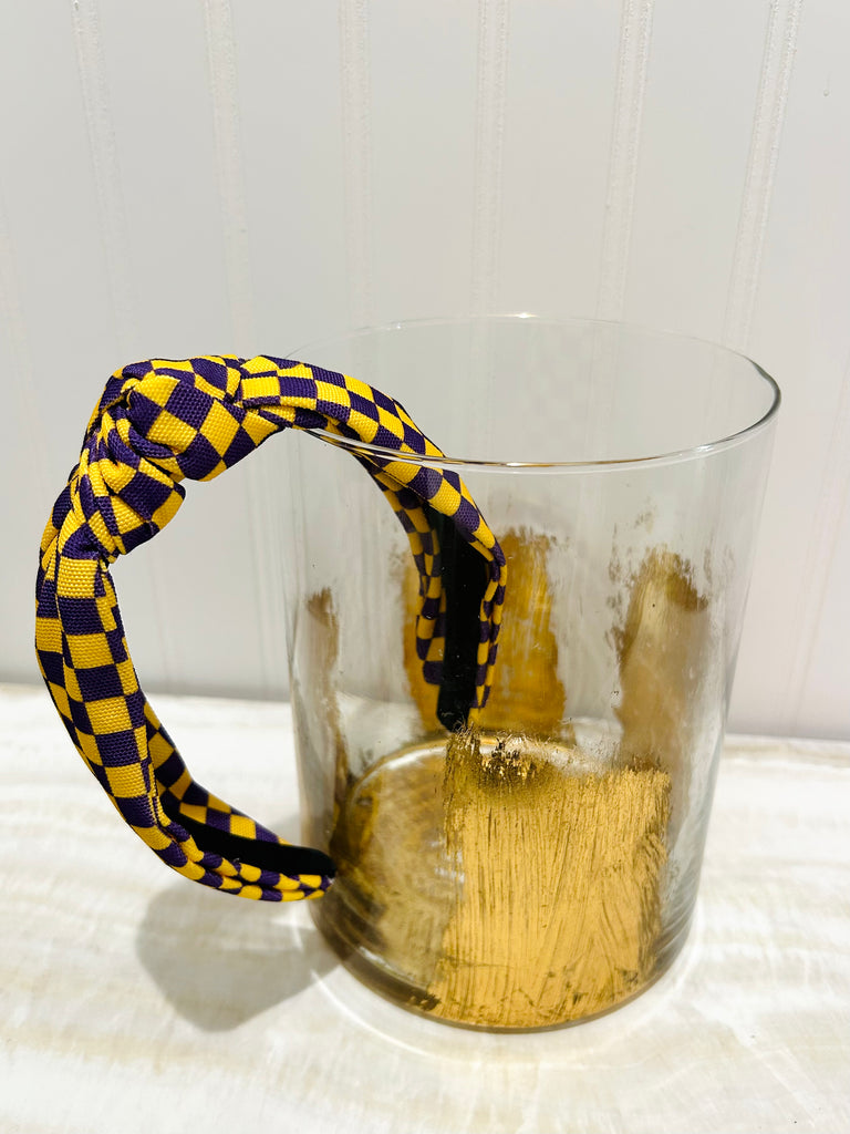 Checkered Game Day Knotted Headband - Purple/Yellow