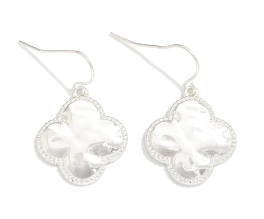 Metal Tone Clover Drop Earring Featuring Textured Metal Border