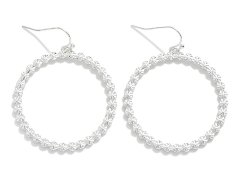 Metal Tone Drop Hoop Earrings Featuring Starburst Detail