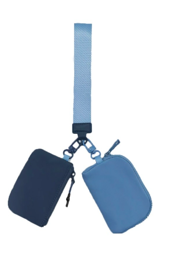 Two Pouch Wristlet Keychain Wallet. One Navy. One Titanium.