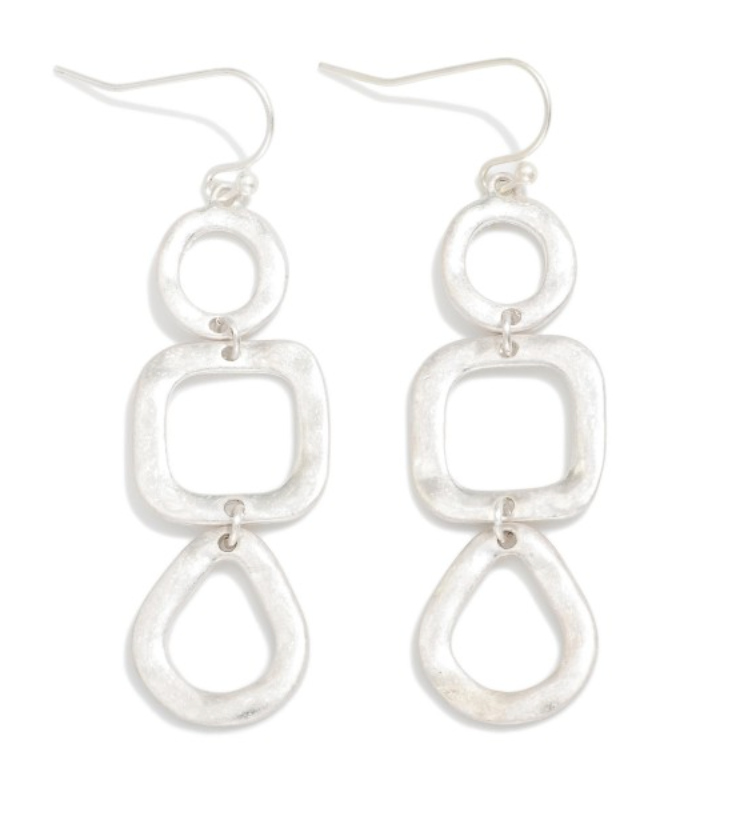 Linked Hammered Metal Geometric Shape Drop Earrings