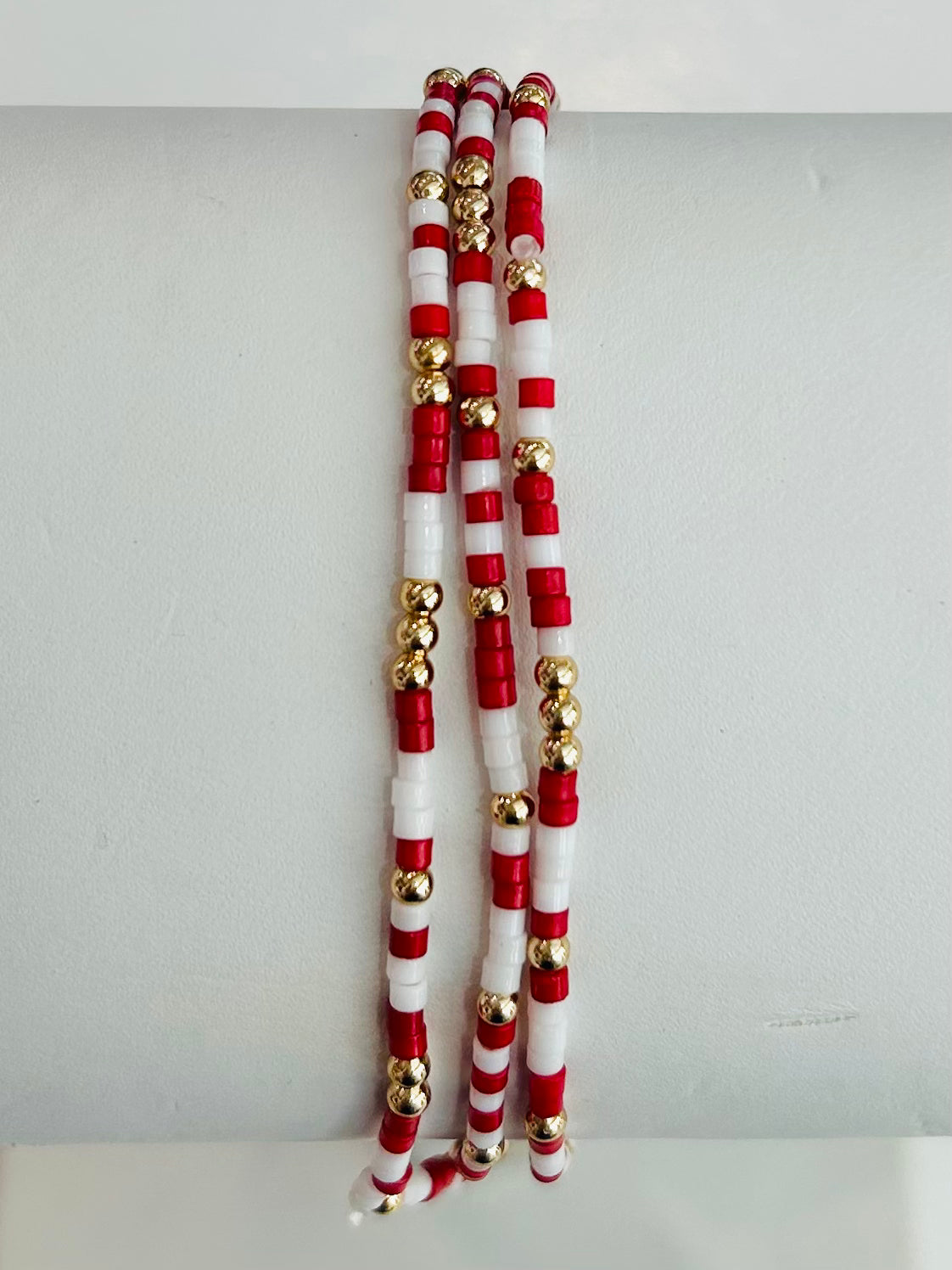 Set of Three Game Day Beaded Stretch Bracelets With Gold Tone Bead Accents