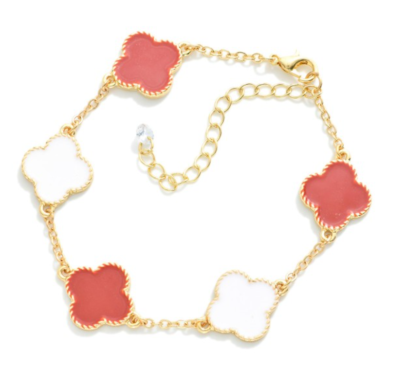 Chain Link Game Day Enamel Coated Clover Bracelet