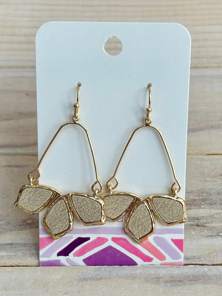 Wire Drop Earrings Featuring Linked Vegan Leather Geometric Shape Details