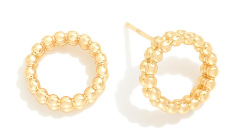 Layered Metal Tone Ribbed Hoop Drop Earrings