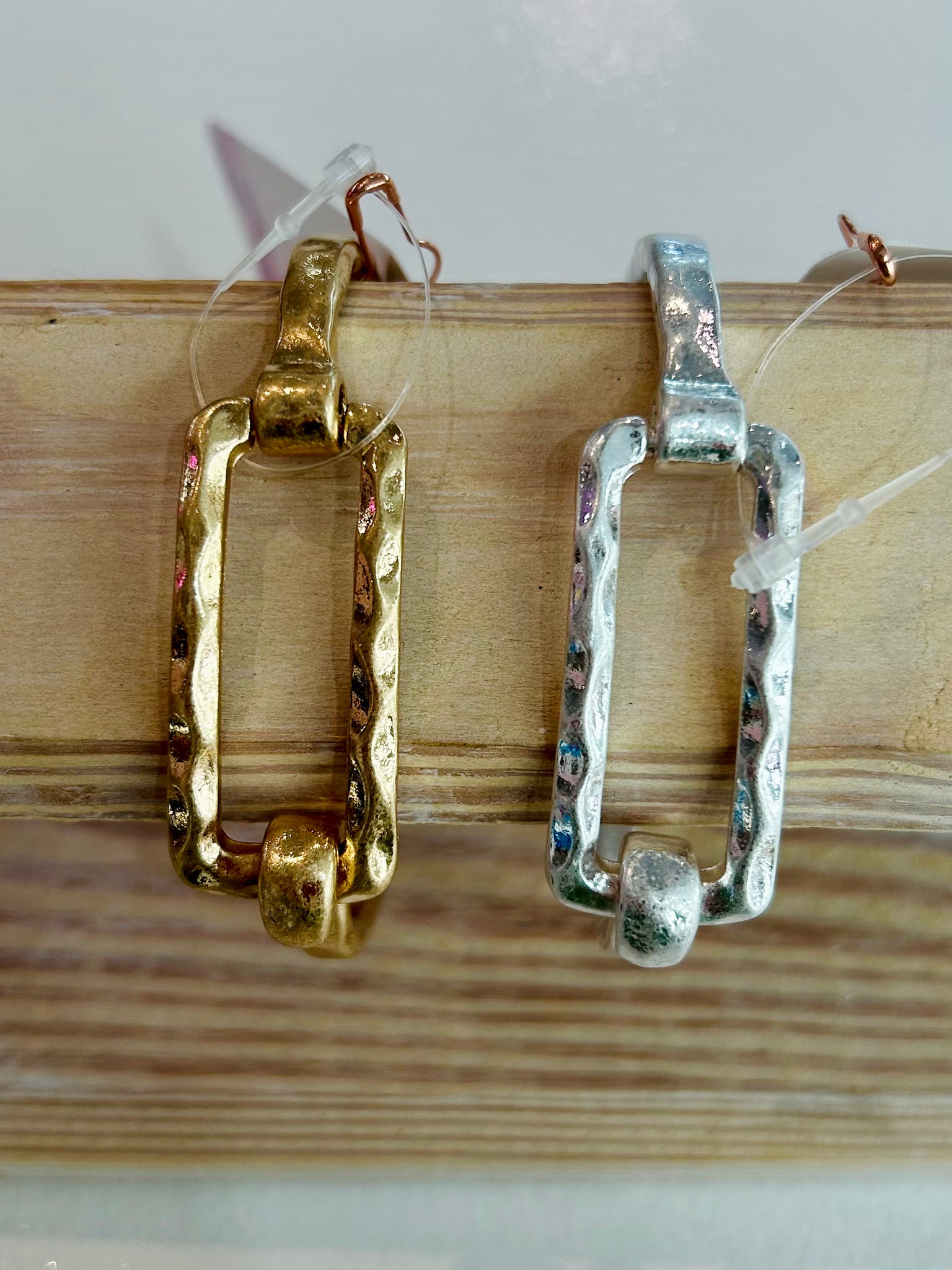 Gorgeous hammered metal hinge bracelet with an open rectangle focal.