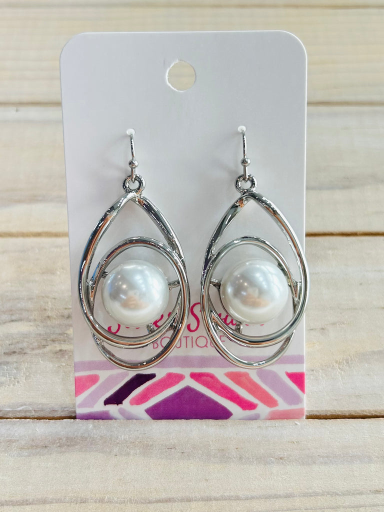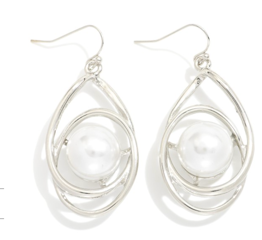 Intertwined Metal Oval Drop Earrings With Nesting Pearl Detail