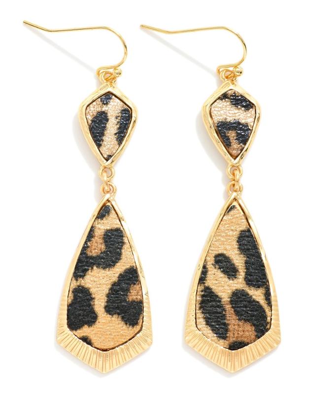 Linked Vegan Leather & Gold Geometric Shape Drop Earrings