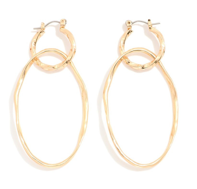 Metal Tone Linked Twisted Hoop & Oval Drop Earrings