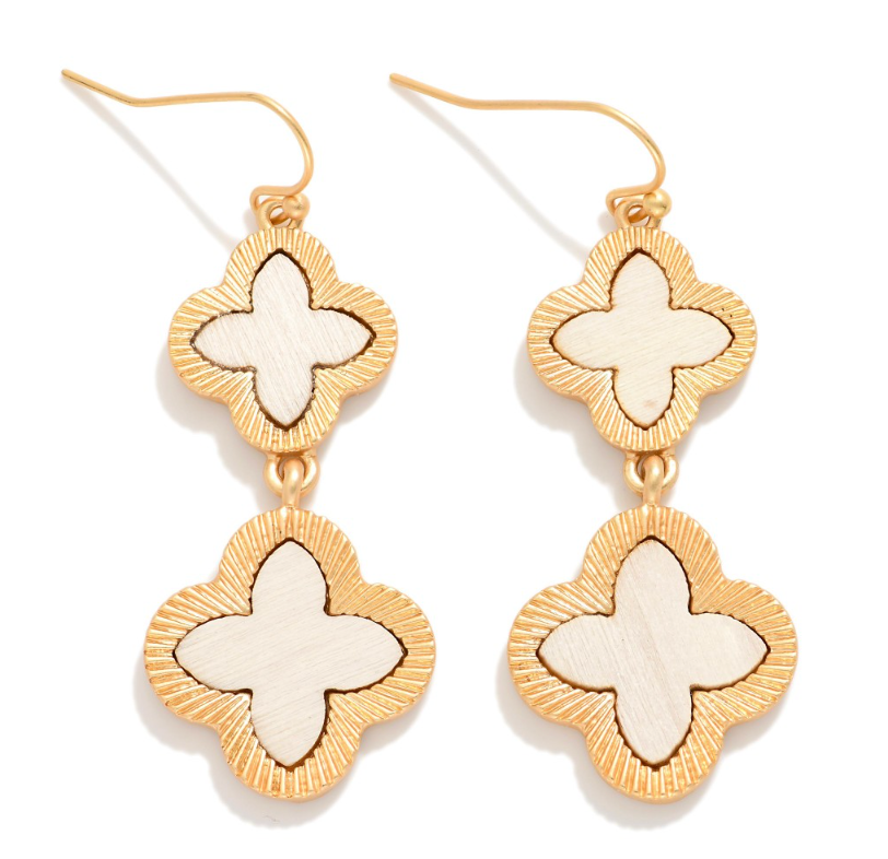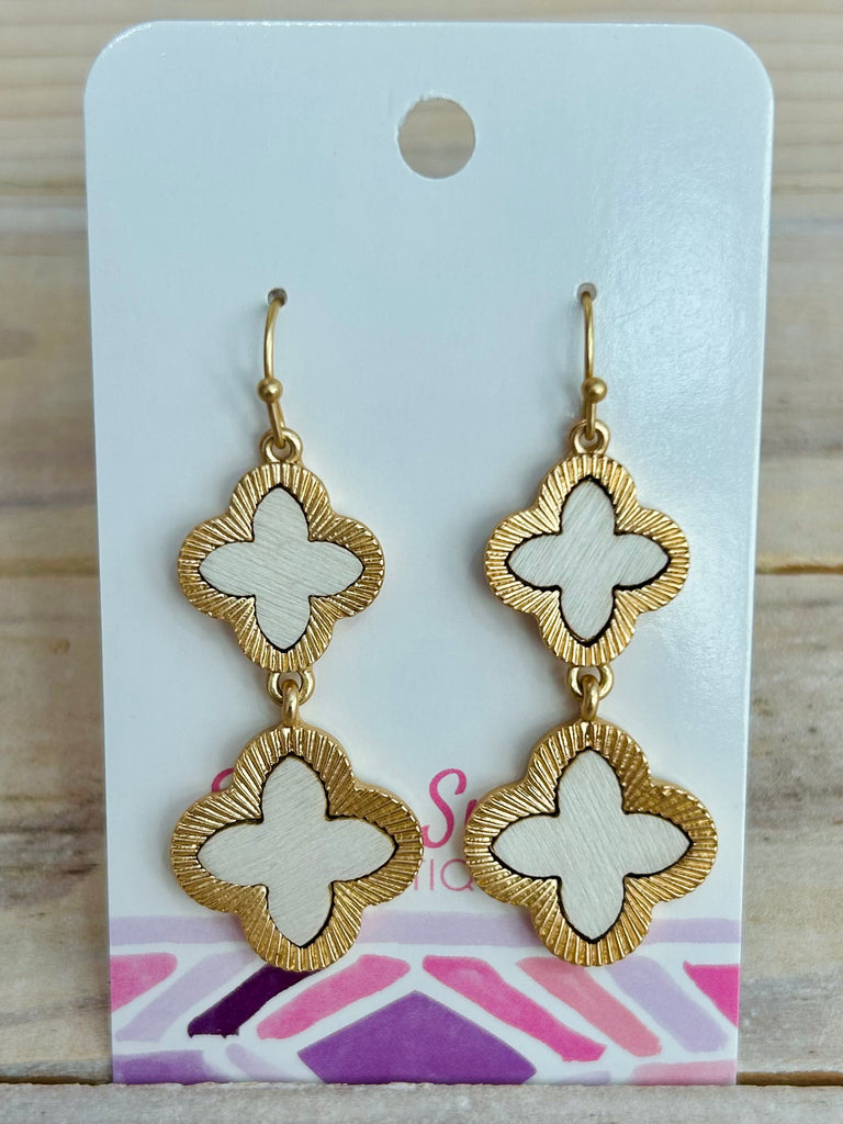 Linked Wood Clovers Drop Earrings - Ivory