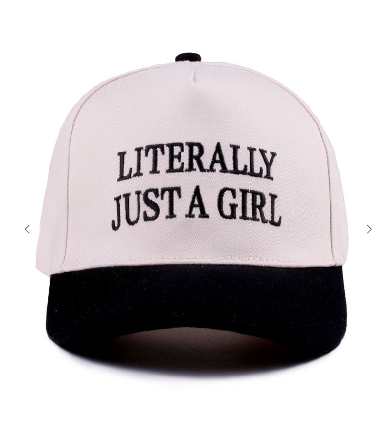 Literally Just A Girl Two-Tone Canvas Cotton Cap - Black