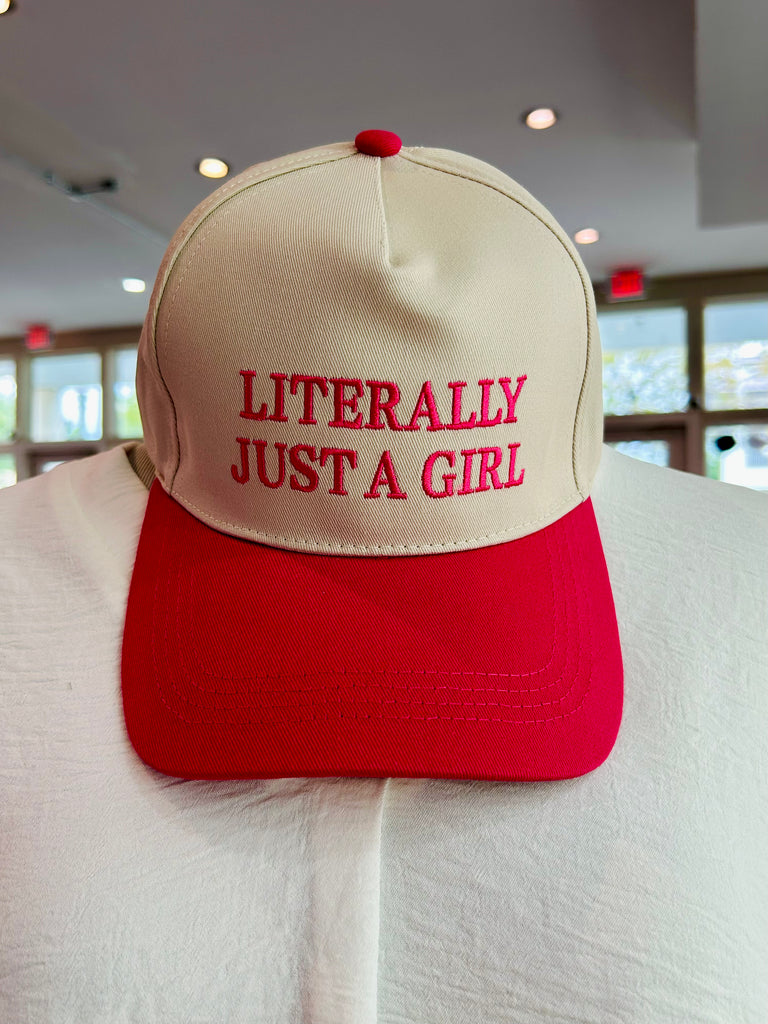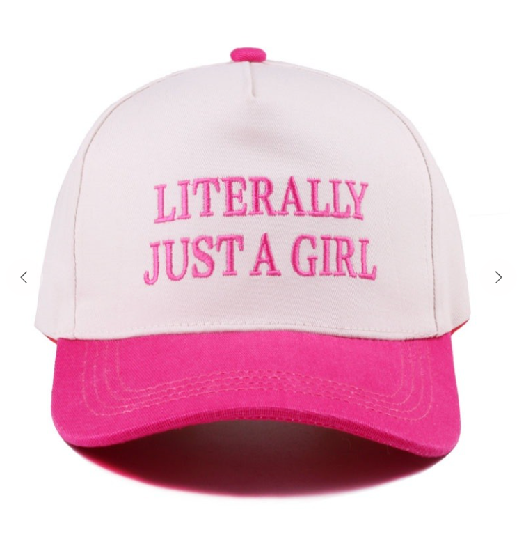 Literally Just A Girl Two-Tone Canvas Cotton Cap - Fuchsia