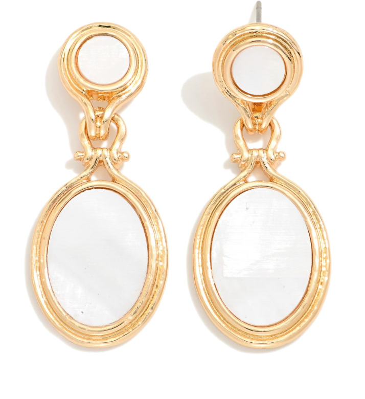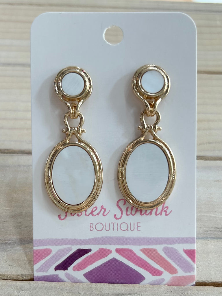 Linked Metal Tone Post Drop Pearlescent Earrings