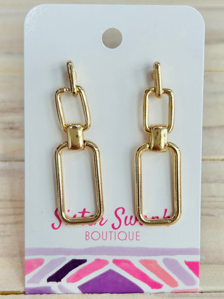 Metal Tone Linked Rectangle Drop Earrings - Gold