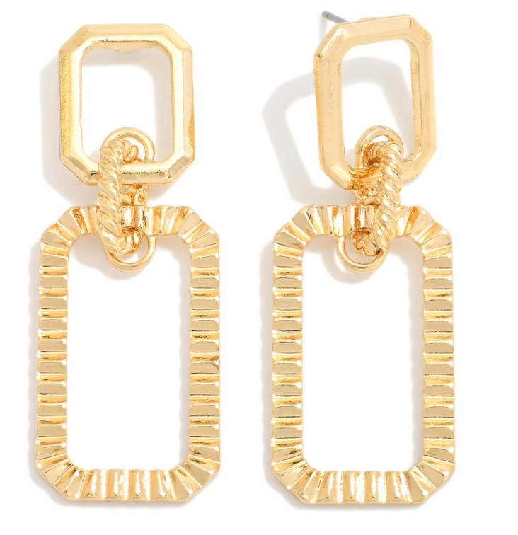 Linked Metal Tone Octagon Drop Earrings Featuring Textured Metal Details