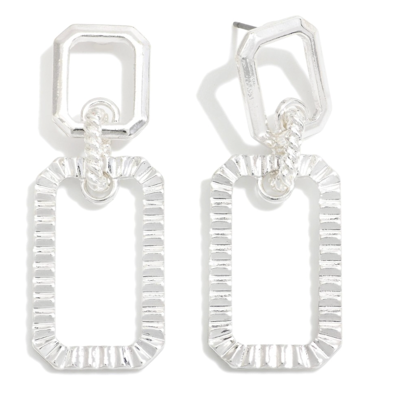 Linked Metal Tone Octagon Drop Earrings Featuring Textured Metal Details