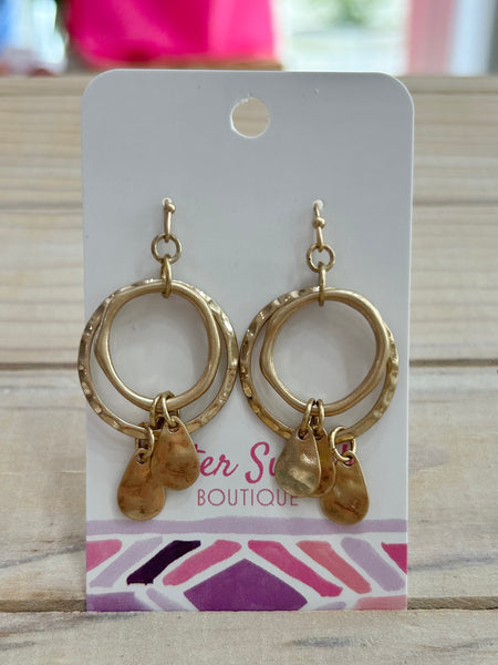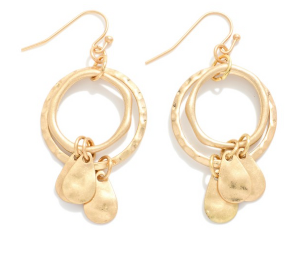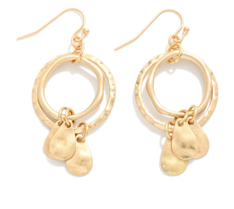 Nesting Hammered Metal Hoops Drop Earrings Featuring Teardrop Tassel Details