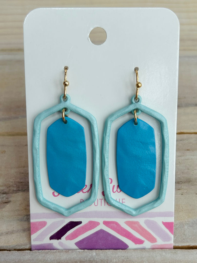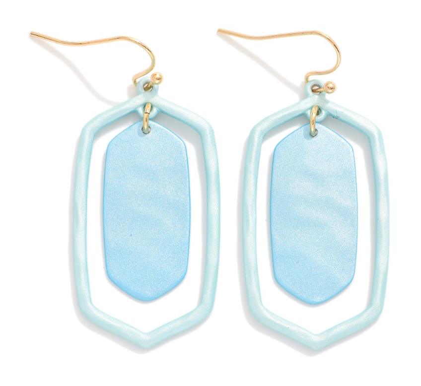 Painted Hammered Metal Nesting Hexagon Drop Earrings