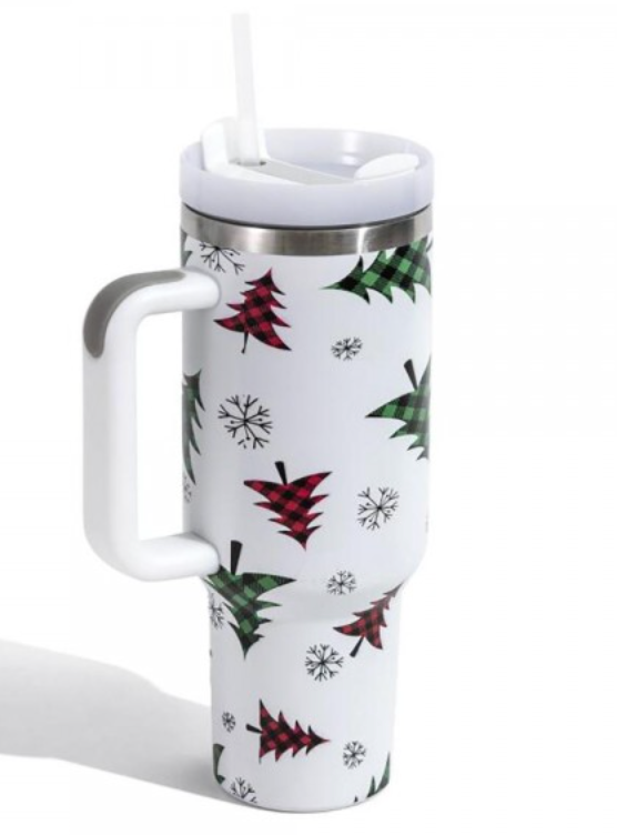 Christmas Theme Printed 40oz Double Wall Stainless Steel Vacuum Tumbler With Handle