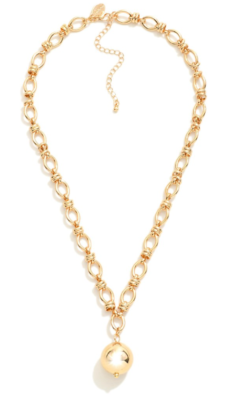 Oval Chain Link Necklace Featuring Layered Metal Hoop Stations & Ball Pendant
