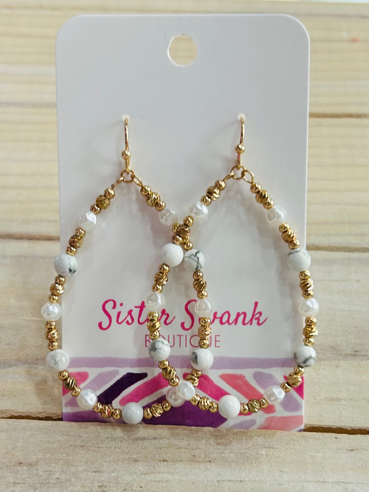 Stone & Pearl Beaded Teardrop Drop Earrings