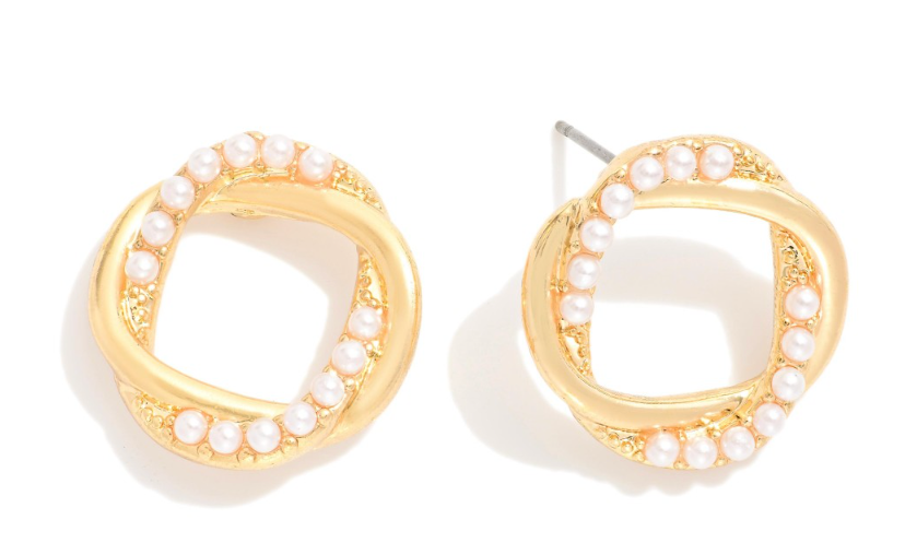 Metal Tone & Pearl Studded Intertwined Hoops Post Drop Earrings. So cute and simple!