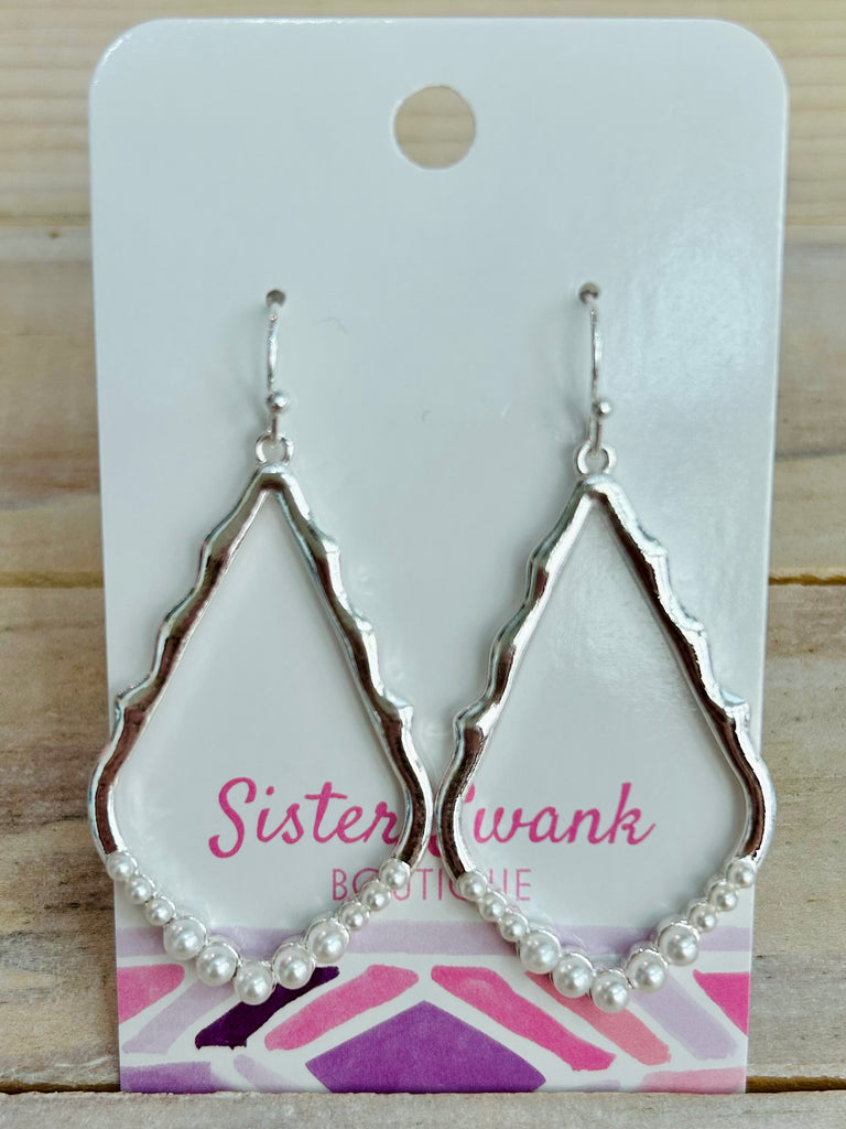 Pearl Studded Wavy Teardrop Earrings - Silver